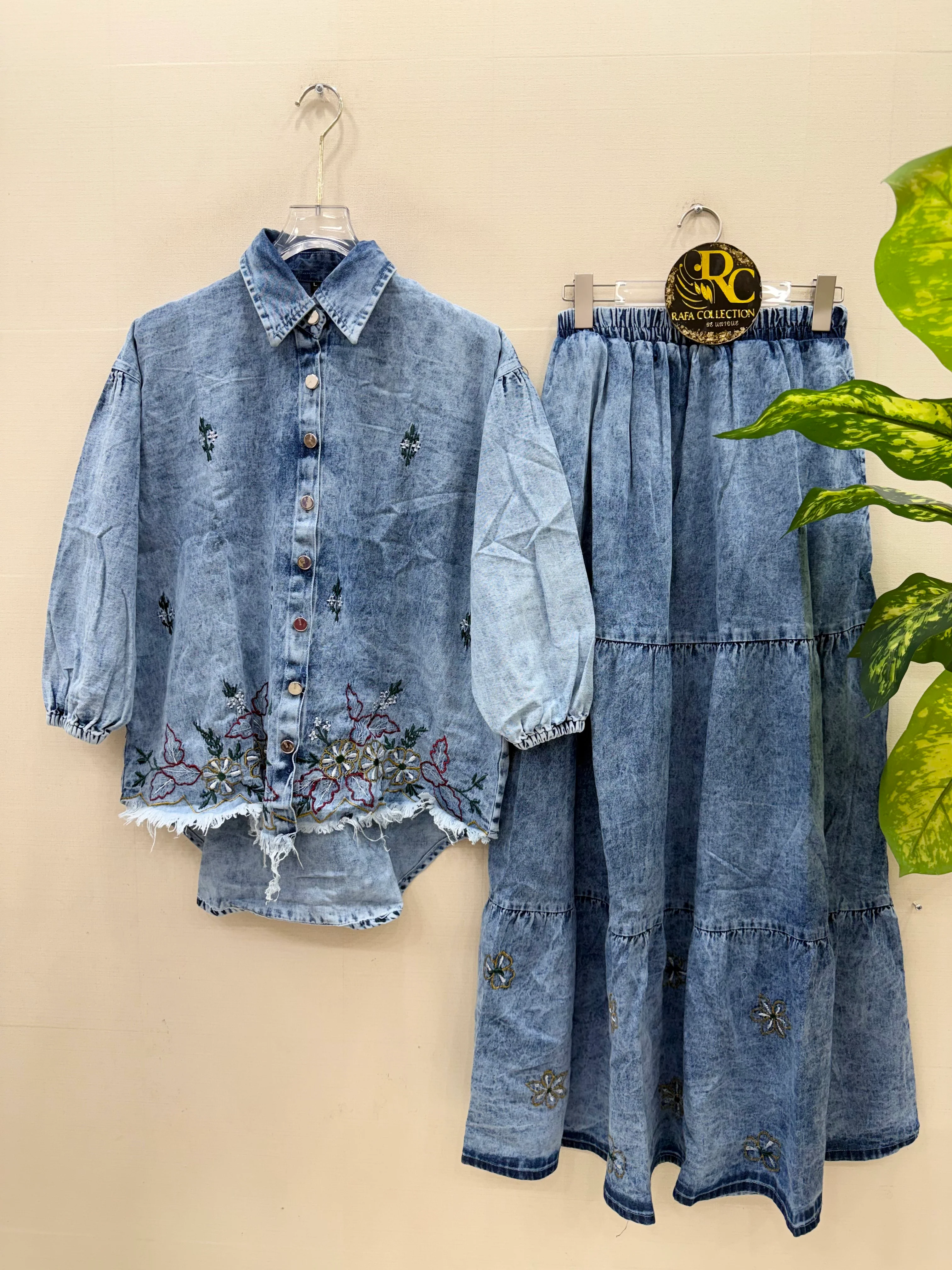 Top:-Denim shirt top with embroidery work