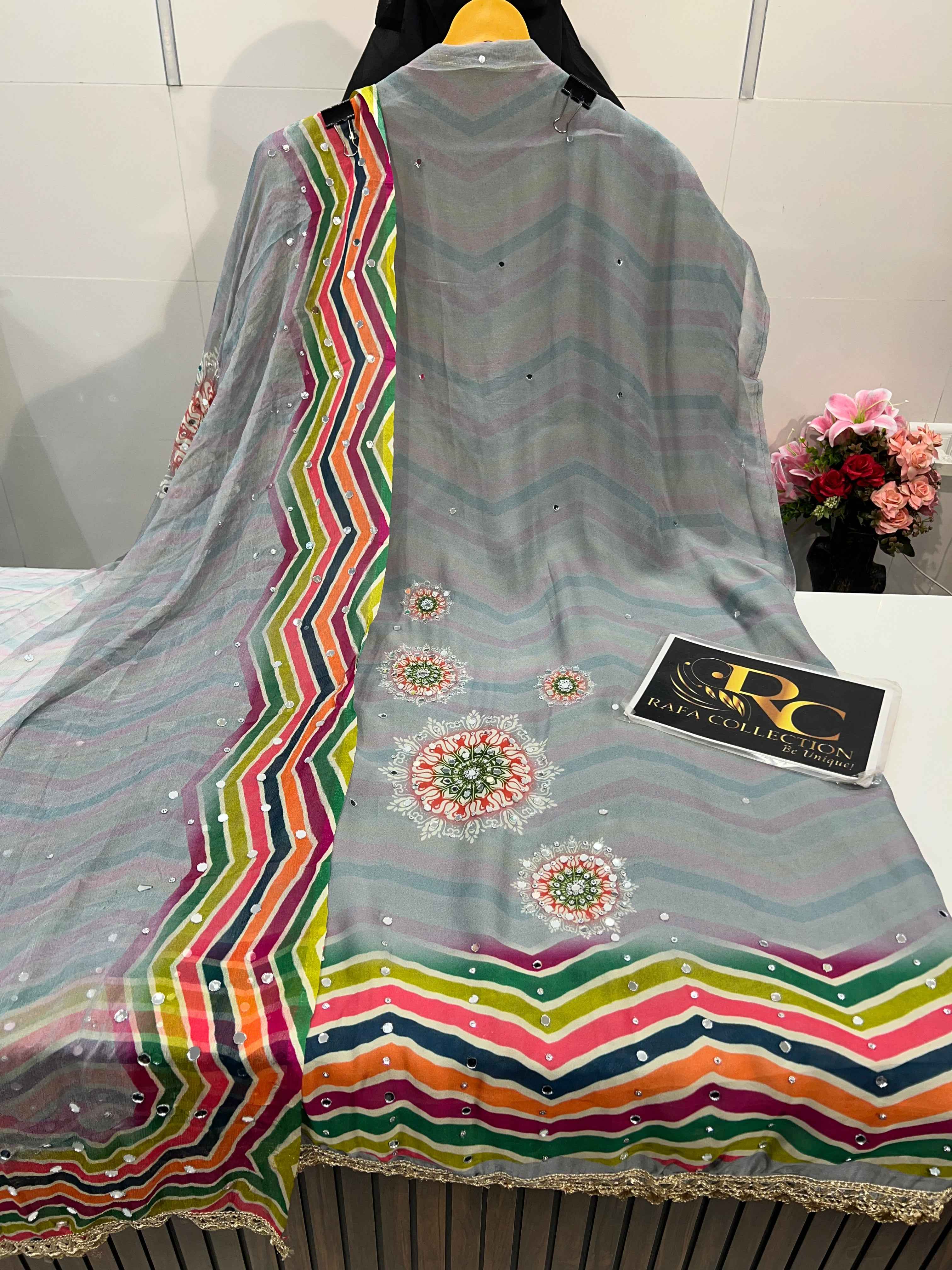 Dupatta:- pure Chiffon dupatta with mirror work